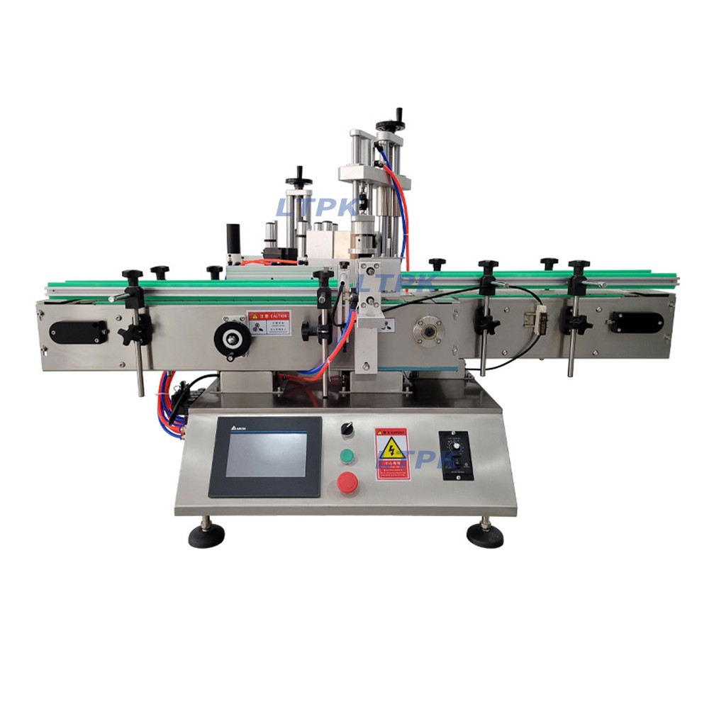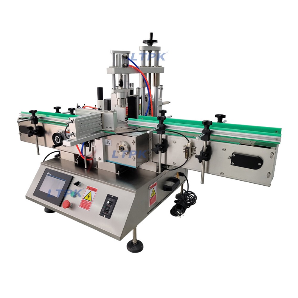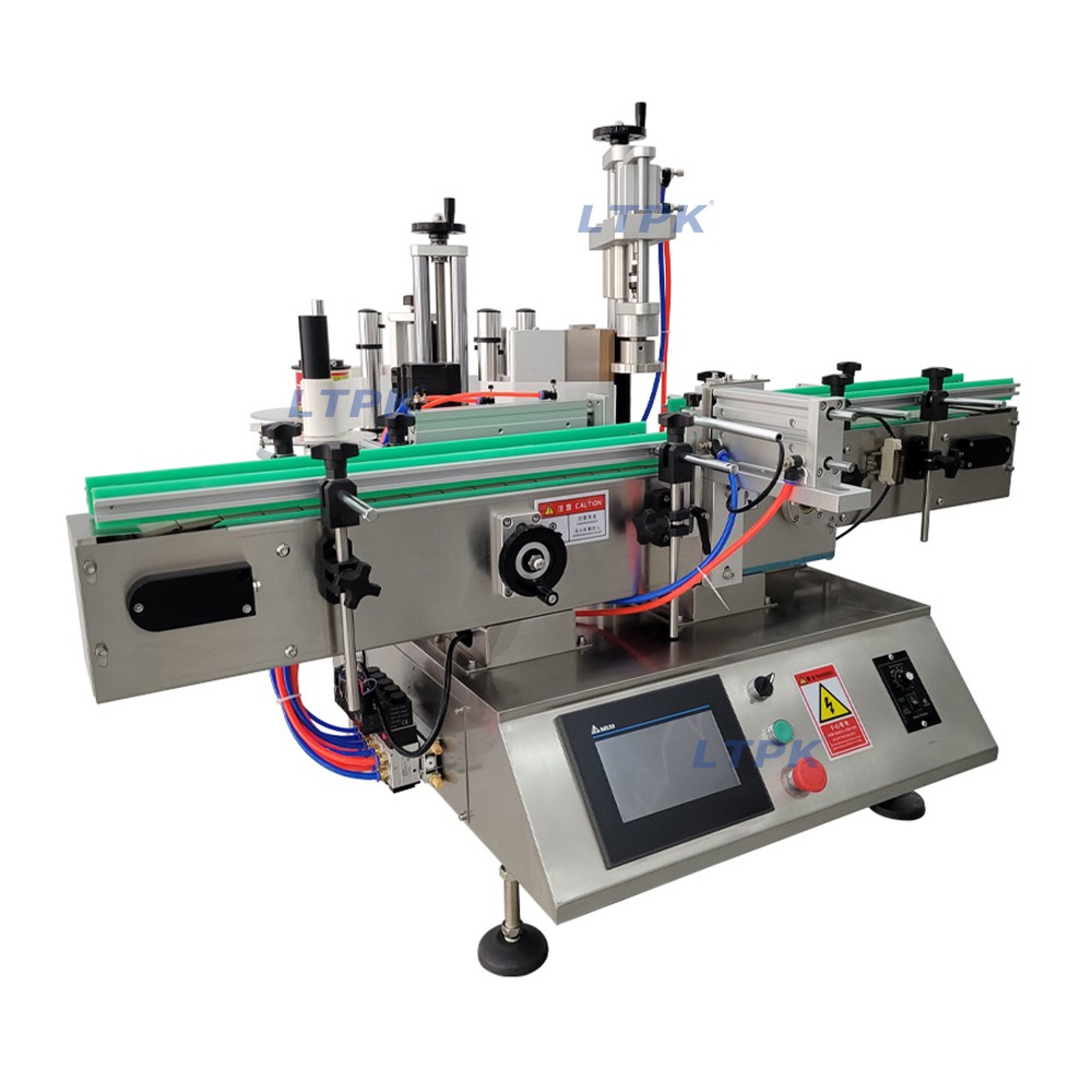 Desktop automatic rotary labeling machine suitable for four sided labeling of square bottles, controlled by PLC, with intelligent touch screen, easy to operate, high stability.This machine can be used with automatic filling machines and Capping machines to achieve automated production.