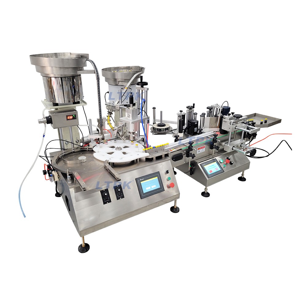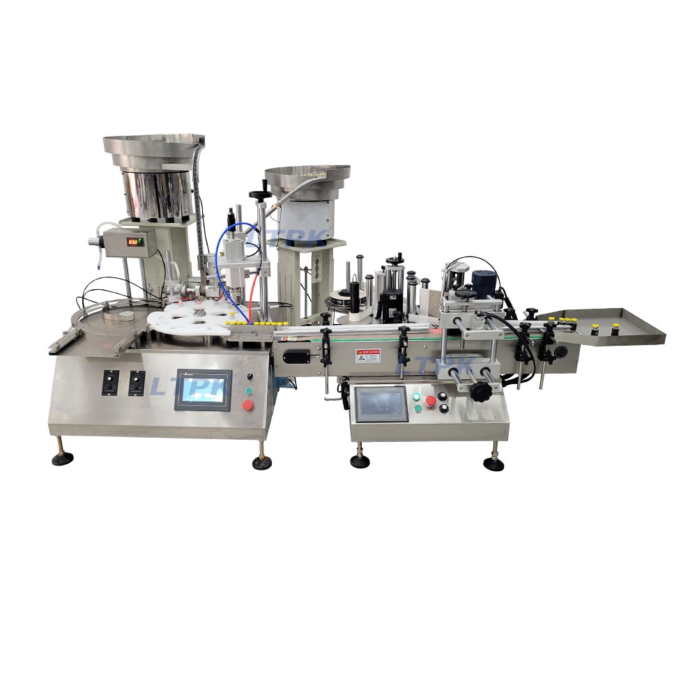 This filling Capping machine is designed for the vial,this is a custom made machine,we can custom it for a variety of small plastic or glass bottles.It can sort bottles,fill liquid into bottle,tighten bottle caps.It is also equipped with cap vibratory bowl sorter which can feed bottle caps automatically.And equipped with a desktop round bottle labeling machine to form a production line, saving production labor.