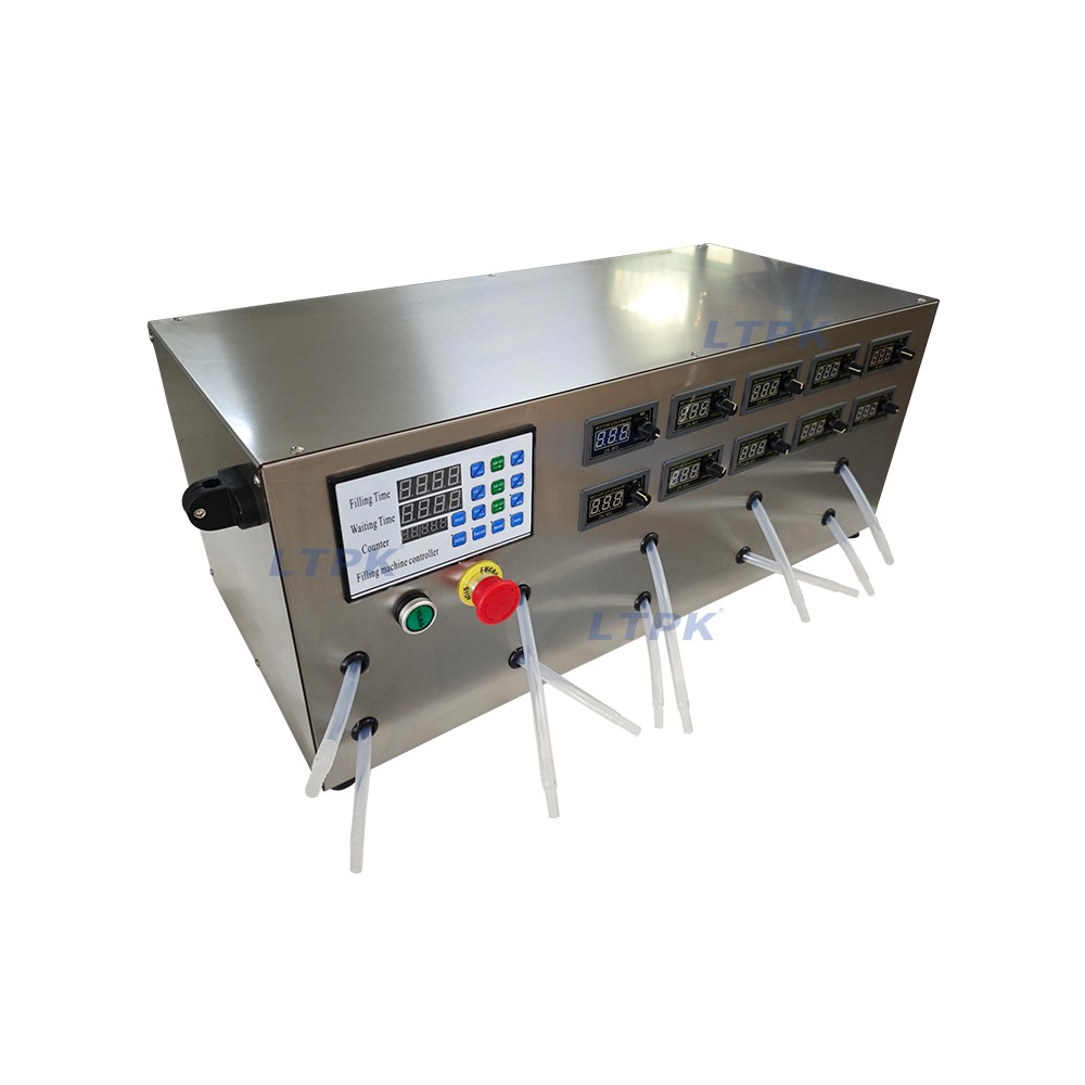 This Liquid Filling Machine uses an intelligent controller to control the diaphragm pump in terms of filling time, motor speed, and other factors, achieving a uniform and low repetition error liquid filling method. The water pump of the machine combines the advantages of self-priming pumps and chemical pumps, and runs smoothly.It’s suitable for filling low viscosity liquid without particle